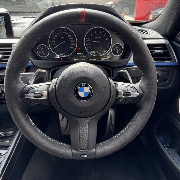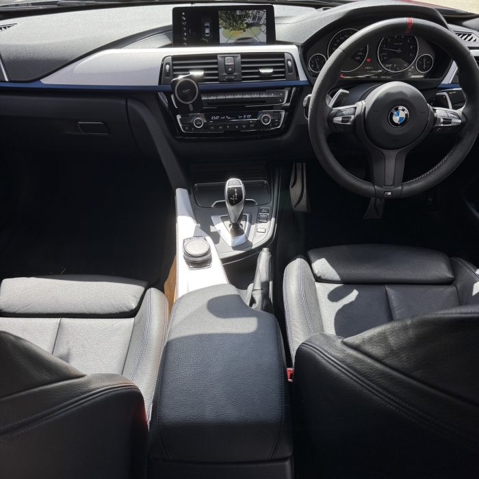 • Interior: M leather steering wheel, sporty seats, aluminum trim.