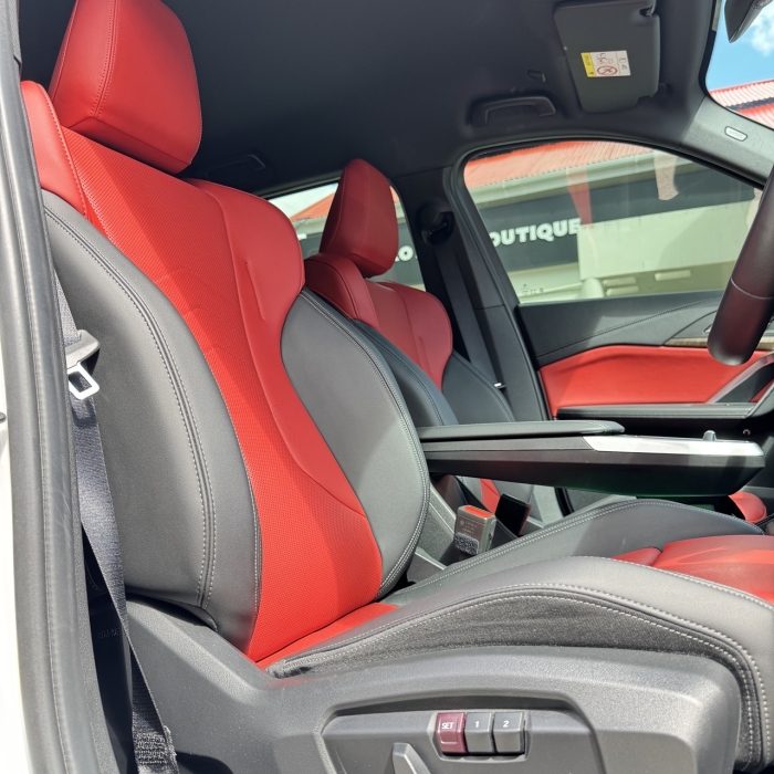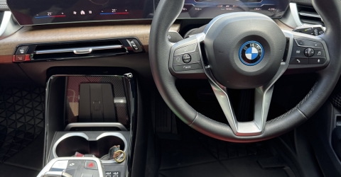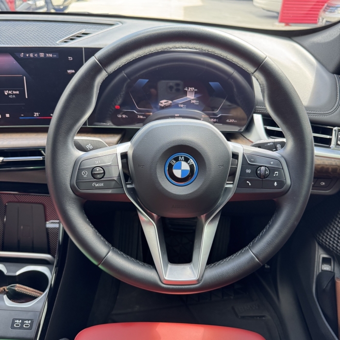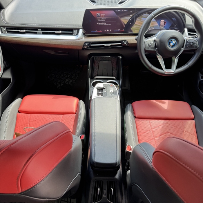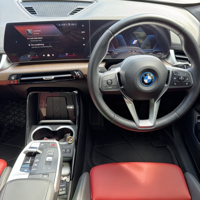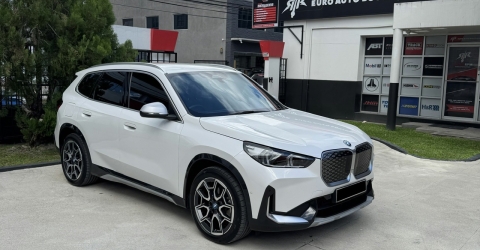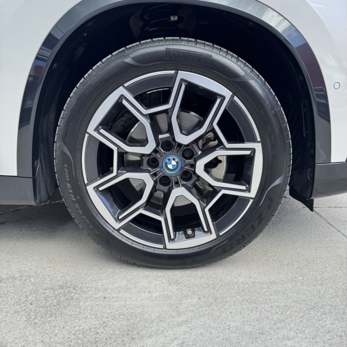 The 2024 BMW iX1 eDrive20 features a front-wheel-drive system with a single motor, producing 150 kW (204 hp) and 250 Nm of torque. It has a 64.7 kWh usable battery capacity, offering a range of up to 475 km (WLTP), with a 0-100 km/h time of 8.6 seconds. Key features include the BMW Curved Display with iDrive 9, wireless Apple CarPlay and Android Auto, wireless phone charging, and advanced driver assistance systems.